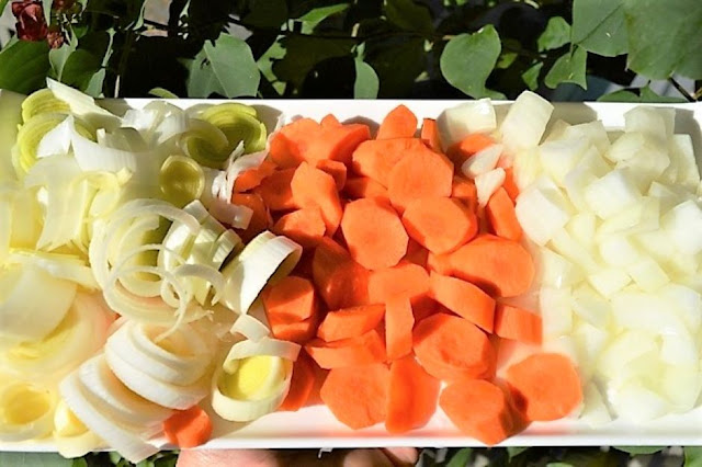 - Pela, renta i talla a rodanxes les pastanagues i el porro.